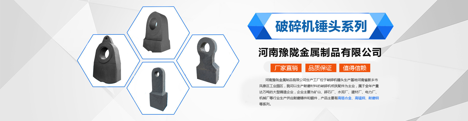河南豫隴金屬制品有限公司生產(chǎn)工廠(chǎng)位于破碎機(jī)錘頭生產(chǎn)基地河南省新鄉(xiāng)市鳳泉區(qū)工業(yè)園區(qū),我司以生產(chǎn)耐磨材料的破碎機(jī)相關(guān)配件為主業(yè),屬于全年產(chǎn)量達(dá)萬(wàn)噸的大型鑄造企業(yè),企業(yè)主要為礦山、碎石廠(chǎng)、水泥廠(chǎng)、建材廠(chǎng)、電力廠(chǎng)、機(jī)械廠(chǎng)等行業(yè)生產(chǎn)供應(yīng)耐磨鑄件和鍛件,產(chǎn)品主要有高鉻合金、高錳鋼、耐磨鋼等系列。